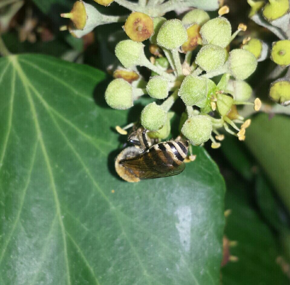 Quei Colletes in effetti, si trovano comunemente in questa stagione e sono tra gli Apoidei più numerosi, e l'edera è una delle poche fioriture disponibili. probabilmente, non hanno neppure un apparato boccale lungo abbastanza per nutrirsi su molte altre specie di fiori. Li ho visti sull'edera e su ombrellifere; tutti fiori a calice corto o assente.