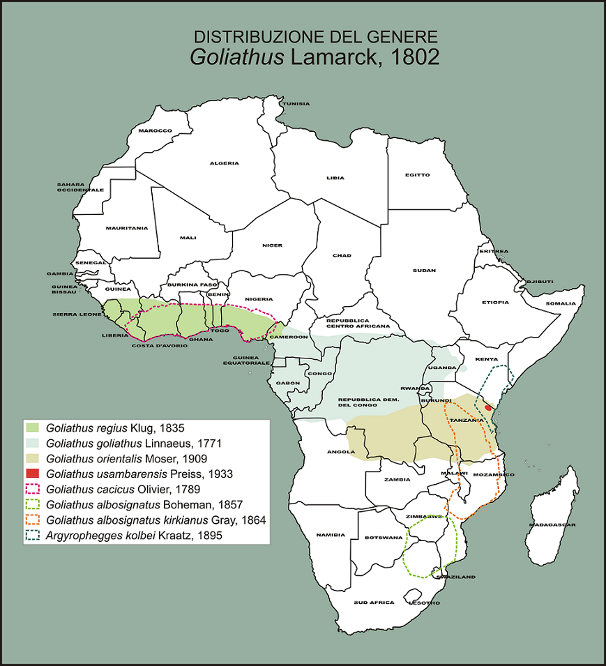 carta distribuzione Goliathus, Hegemus, Fornasinius e Dicronorhina