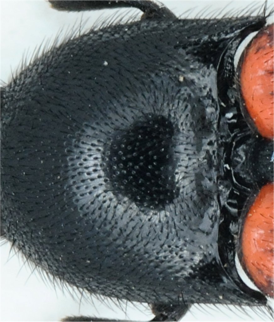 P.S: fra l'altro, non vedo differenza di brillantezza del terzo articolo rispetto agli altri, sul pronoto non ci sono riflessi blu e la peluria è nera.