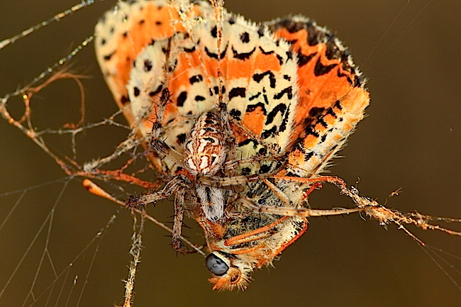Esatto! Neoscona adianta. Un ragno che cattura spesso prede grandi, come le libellule.
