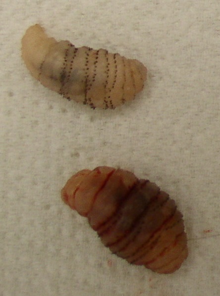 un mio collega AnatomoPatologo mi ha chiesto un parere su due larve trovate in due lesioni cutanee di una paziente, entrambi pensiamo si tratti di miasi ma chiediamo un vostro parere di esperti in materia :ok: