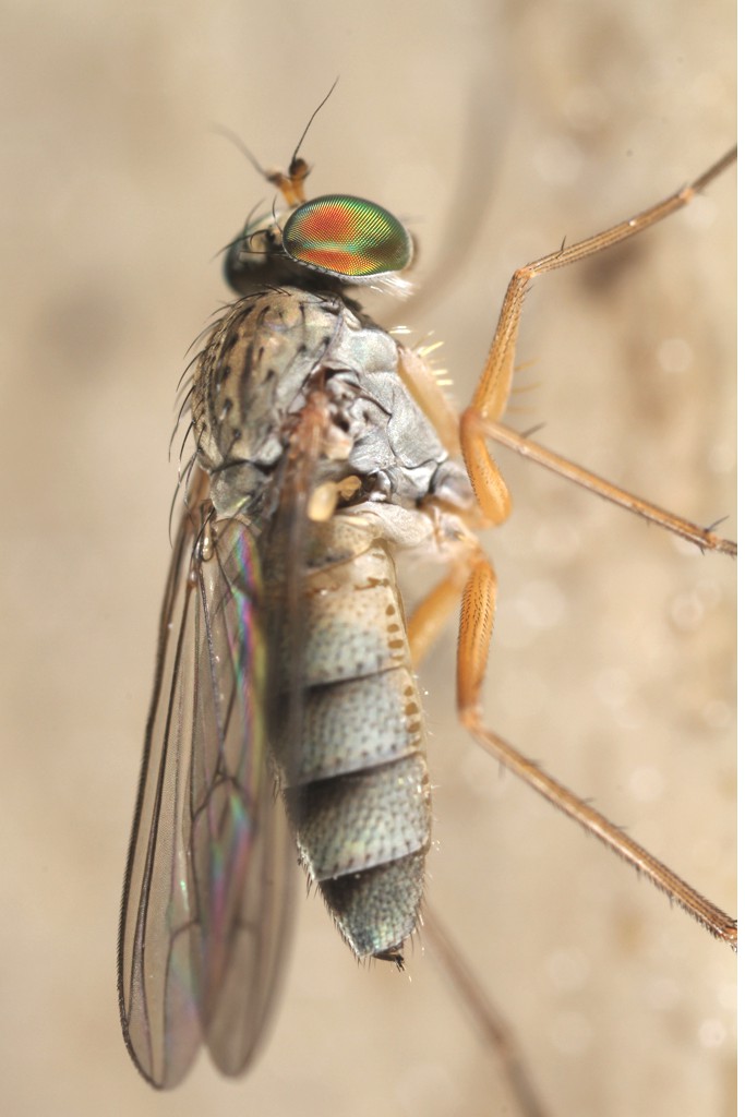 Questa mattina ho cercato di fotografare nuovamente lo Sciapus di ieri con maggiore dettaglio. Era sempre vicino alla solita finestra, e ho scattato altre foto. Quando poi le ho ingrandite sullo schermo del computer, mi sono reso conto che si trattava certamente ancora di uno Sciapus ma non era lo stesso. E' diverso l'habitus e in particolare la postura delle ali, l'addome ha forma e colorazione differenti, i tarsi anteriori sono uniformemente neri. Potrebbero essere semplicemente due esemplari della stessa specie e sesso diverso (questa la femmina, quello di ieri il maschio)?