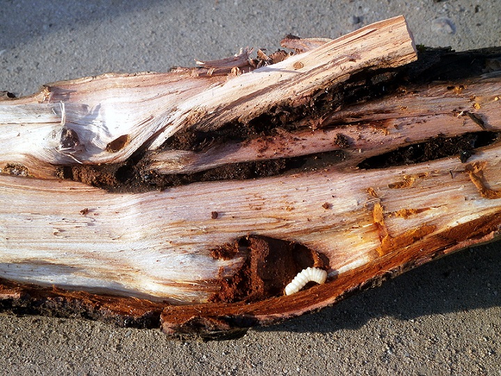 In Poland, X. pantherinus has 3 years of development. The larvae first feed in a living wood, and end development in dead wood. I have not met the young larvae in the wood completely dead. I found it in both branches of the cross-section of 3 cm and in trunks section 20 cm.
