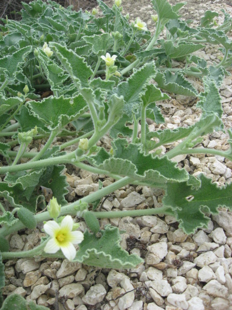 Molto abbondante ai margini del sentiero è questa pianta, che non ricordo di aver mai incontrato, il "cocomero asinino" (Ecballium elaterium (L.) A. Rich.). La straordinaria capacità dei suoi frutti, che riescono a "sparare" semi grazie ad un meccanismo di pressione idraulica, mi viene spiegata e mostrata con un esempio pratico da mio padre... :o