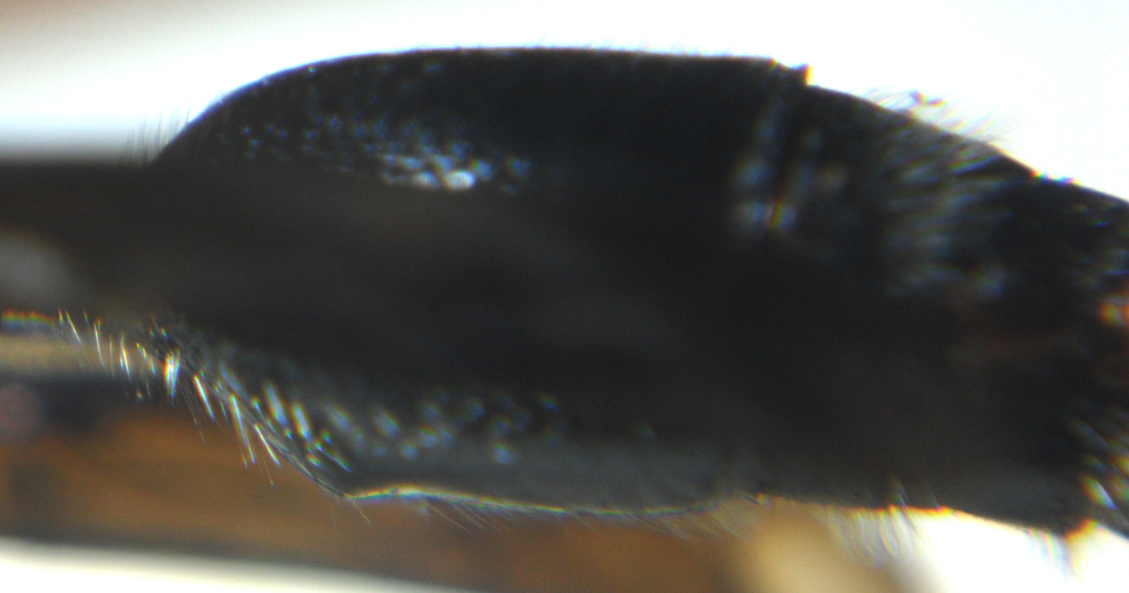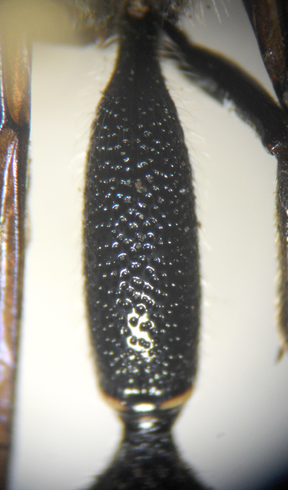 La specie che qui vi mostro è Zethus dolosus e fa parte del primo gruppo, ma si riconosce immediatamente per il secondo sternite con una protuberanza nel mezzo.