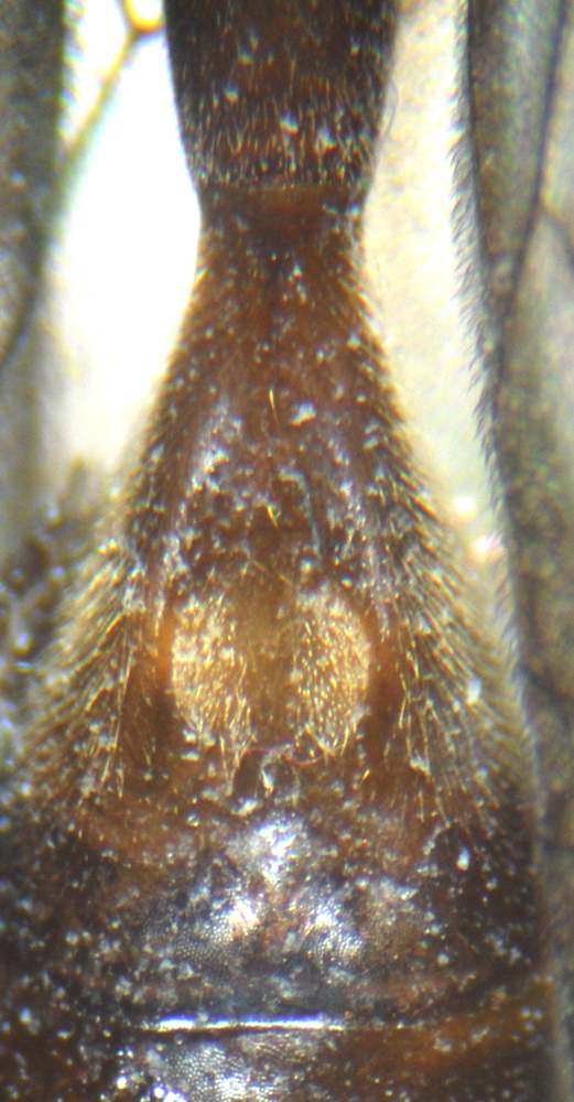 Come riportato nella diagnosi, il maschio di questa specie può essere distinto per il flagello con setole nere, il secondo tergite con una depressione ricoperta di densa peluria e macchiata di rosso e con due piccole protuberanze sui margini laterali più vicine al margine anteriore della depressione che all’apice del tergite, quarto sternite macchiato di giallo.