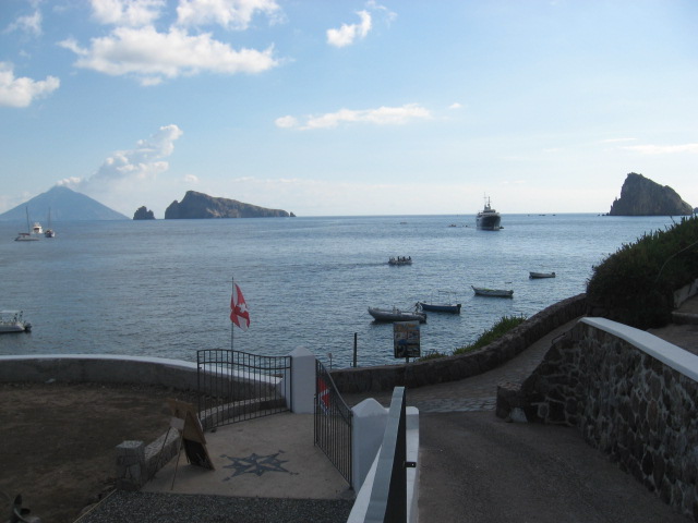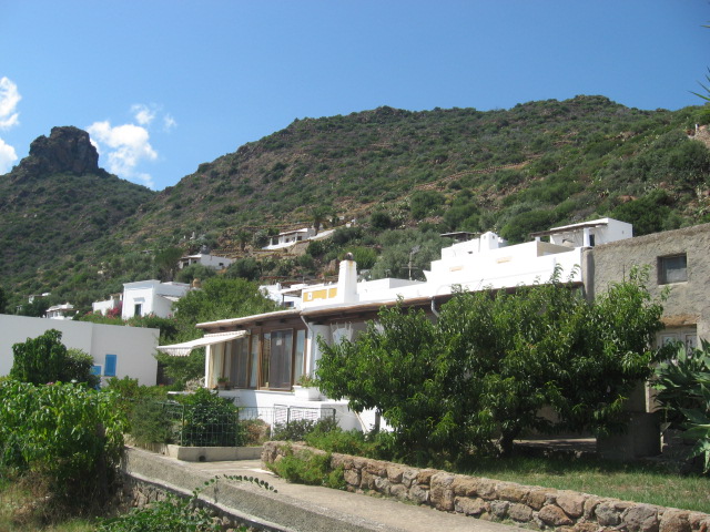Appena sbarcato sull'isola, sono subito colpito dal contrasto fra il bianco degli edifici, tipico dell'architettura eoliana, il bruno delle rocce vulcaniche e il blu cianescente del mare...