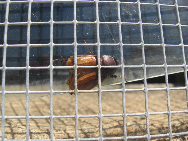 Incastrato in una finestra, i resti vecchi di almeno due mesi di un'Aplidia hirticollis, il Melolonthidae più comune delle Eolie.