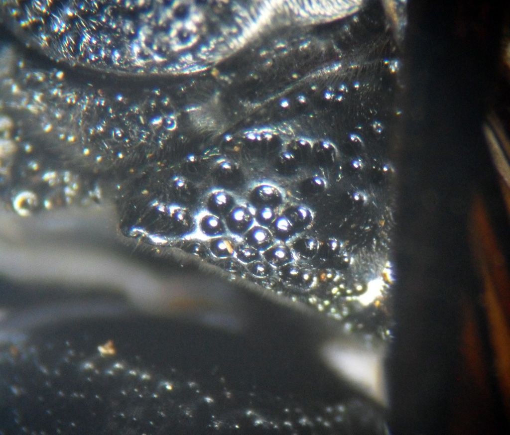 Questo è un maschio, in cui è ben evidente la base dell'ala posteriore ialina, carattere che lo distingue dal cariniventre. Un altro carattere utile per distinguere le due specie è la punteggiatura delle facce dorsali del propodeo, che è più profonda e densa in cariniventre.