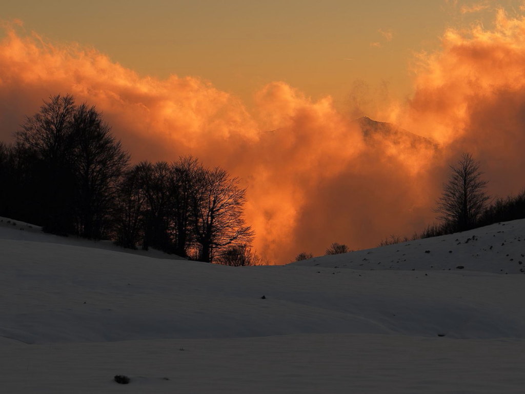 Maurizio, quel posto di serra di Crispo con i pini "danzanti", perché tutti ugualmente inclinati, è stato definito "il giardino degli dei" da Giorgio Braschi. Dovresti vederlo a maggio per capire, il prato è costituito da una distesa senza fine di orchidee e fiori vari incorniciati dagli ultimi nevai. Se ci resti fino al tramonto il paesaggio che si presenta è così bello da togliere il fiato...