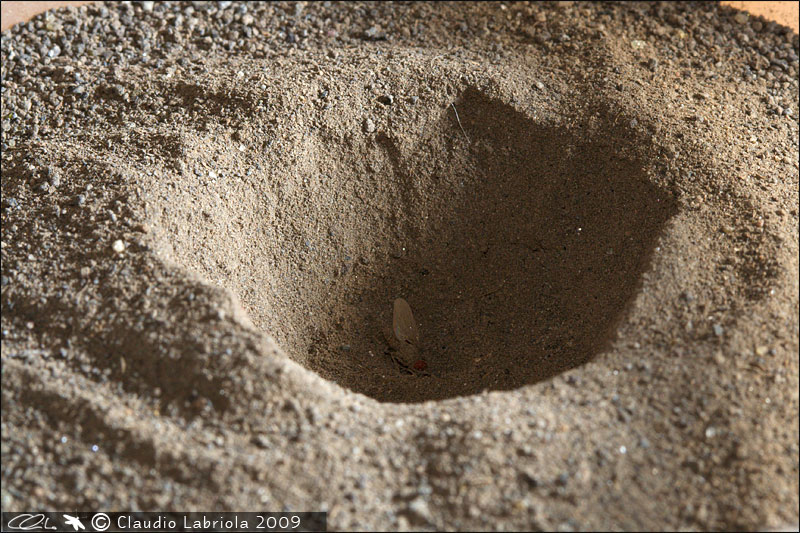 Buon ultimo :) posso solo condividere con te il piacere di una larvotta ormai quasi pronta all'imbozzolamento che sto ancora nutrendo di tanto in tanto con formiche, ogni qual volta prepara il suo imbuto trappola...