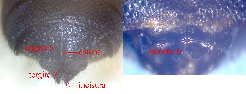 Da profano fatico ad orientarmi con i caratteri che tu mi dici, in particolare ad identificare questo ultimo segmento. Ho provato a fotografare la parte finale dell'addome della bestiolina, dove il penultimo segmento (se è quello), effettivamente, ha una carena.