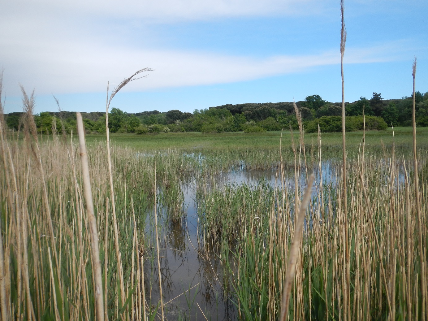 Area impaludata con vasto fragmiteto. Sullo sfondo il settore nord della pineta di San Vitale.