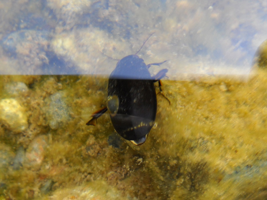 Arrivo a queste dimensioni (approssimative), osservando che gli Ancylus hanno una lunghezza variabile intorno ai 5 mm e, ad occhio, malgrado la posizione del ditiscide non aiuti, la sua lunghezza mi sembra di almeno quattro volte maggiore.