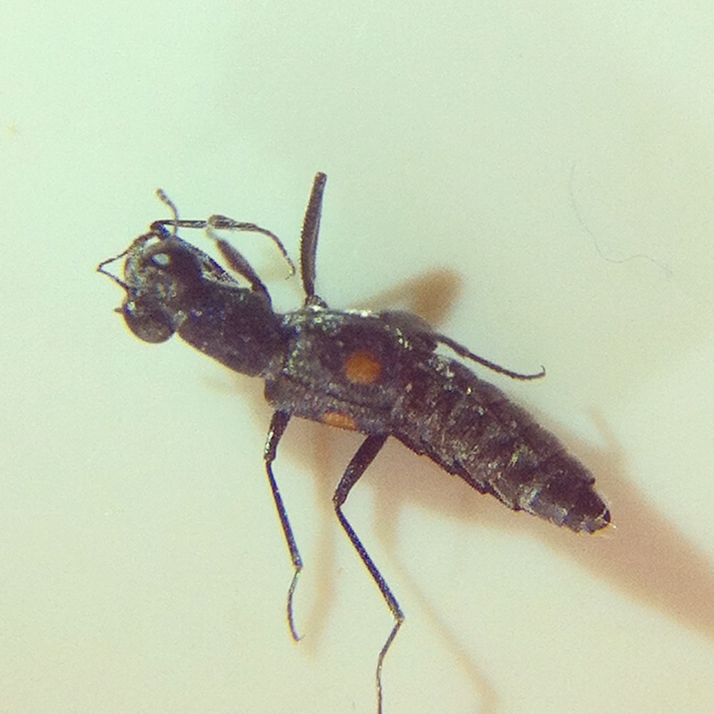 Ciao. Vedo che hai raccolto degli ortotteri. Il più grande è un Aiolopus strepens strepes. Il più piccolo è un Tetrigidae, probabilmente Paratettix meridionalis o forse una Tetrix, quindi ben più interessante (le Tetrix comuni hanno il protorace piano). Gli Stafilinidi sono Stenus (Stenus) sp. (non sembra il solito guttula) e Paedridus sp..