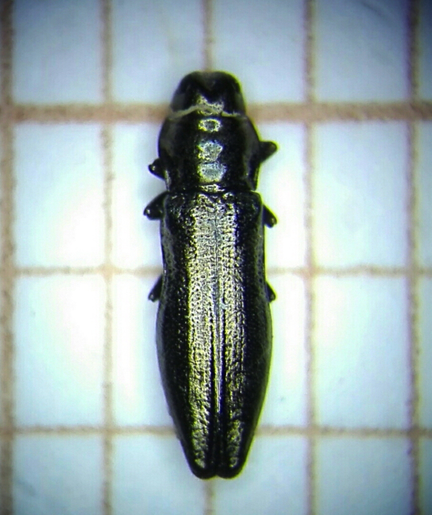 La cosa simpatica è che isolando gli Aphanisticus per fare quella brutta foto allo stereomicroscopio mi sono accorto che tra essi c'era un minuscolo Elateride che non ricordo di aver preso in altro luogo se non sugli stessi Juncus sp.