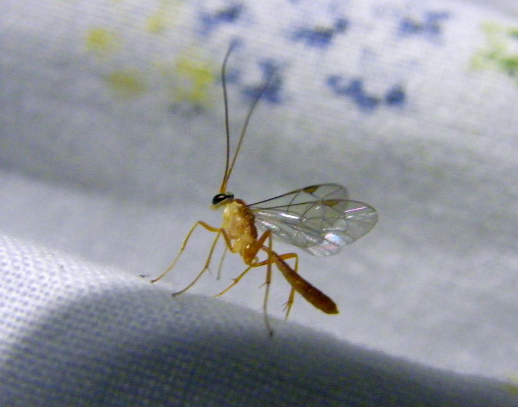 Un altro imenottero (ichneumonide?) accorso alla luce. Lunghezza 8 mm (non badate alla preparazione, è "provvisoria" perché non ho intenzione di prepararlo ora ed è solo per mostrare la nervatura delle ali). Qualcuno sa di chi si tratta? Grazie a tutti.