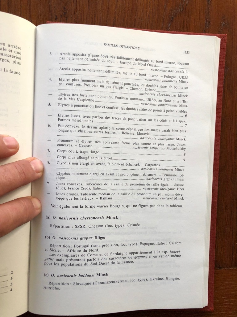 Come si vede sotto nel disegno di Baraud si passa da un clipeo quasi dritto in nasicornis nasicornis ad uno fortemente inciso in nasicornis gryphus. Da questo disegno tutto lascia pensare a che si tratti di un cline del quale sono facilmente distinguibili le forme estreme, una ad affinità Nord Europea ed una ad affinità Magrebina. In mezzo ci sono gli intermedi compreso corniculatus/laevigatus.