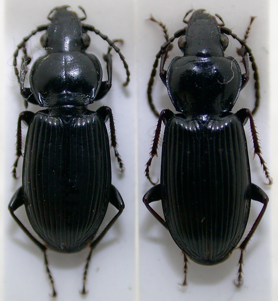 Nei Carabidae (e in alcune altre famiglie di coleotteri, come ditiscidi, alcuni silfidi, molti stafilinidi, ecc..) il maschio si riconosce spesso per i tarsi anteriori dilatati, più larghi rispetto alle femmine. E' un adattamento per fare più "presa" sul dorso della femmina durante l'accoppiamento; ha un'importanza molto grande soprattutto nei ditiscidi, che essendo acquatici hanno maggiori difficoltà a restare "aggrappati", e per questo i maschi oltre ad avere tarsi anteriori molto dilatati hanno in alcuni casi delle vere e proprie "ventose" fatte di setole specializzate.