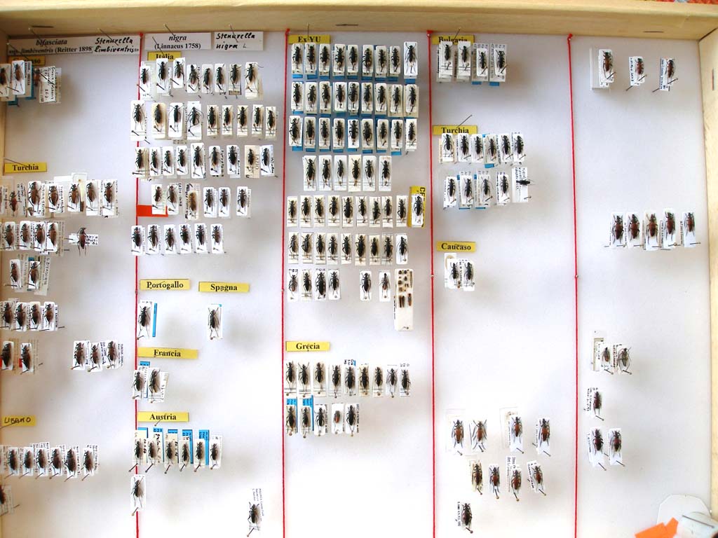 Mi sembra una discussione puramente filosofica. Chi ha una collezione che debba accontentare il proprio gusto estetico può fare quel che gli pare; insetti incollati e preparati con riga, squadra e calibro e messi in scatola in file regolari tirate con il filo a piombo, praticamente senza uno spazio fra un esemplare e l'altro per guadagnare spazio. Chi, invece, deve usare la propria collezione per uno studio scientifico, a meno che non abbia a che fare con un solo esemplare, basta che ne spilli o, meglio ancora, ne incolli sul dorso un esemplare (o una coppia se necessario e se possibile) in modo da avere tutta la parte ventrale visibile. Se poi, in una serie, ci sono esemplari incompleti (antenne o zampe rotte) (il che capita spesso) il problema è risolto. Io non solo ho esemplari spillati o incollati sul dorso, ne ho pure almeno un paio sezionati, con antenne, zampe, tarsi, scutello, parti boccali, meso- e metasteniti, metendosternite, genitali, ecc. Fra un esemplare e l'altro lascio spazio in modo che gli esemplari momentaneamente sfilati dalla scatola per esaminarli, non soffrano per eventuali contatti o urti al momento di reinserirli al loro posto. Infine, se può essere un suggerimento, la mia collezione è impostata come è visibile da una delle scatole del genere Stenurella. Gli esemplari sono già divisi per nazione in modo da non dover estrarre tutti gli esemplari per individuare quelli provenienenti da una determinata nazione o regione utili per un confronto. Tutto questo mi sembra ovvio e banale, ma non ne trovo traccia nella discussione (se non mi sono perso qualcosa).