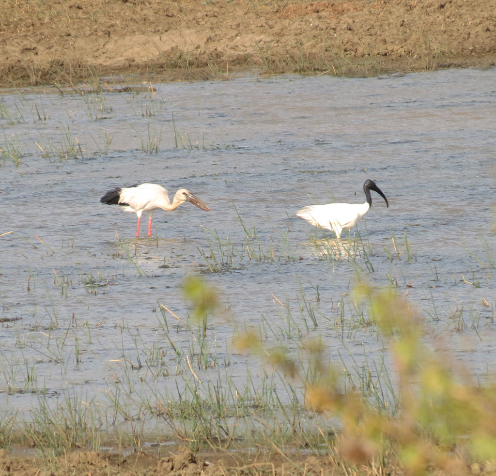 La vegetazione nel Parco di Yala è piuttosto varia; sono presenti estese praterie, in questa stagione decisamente aride, ma anche lembi di boscaglia più o meno fitta. Molto frequenti i pavoni – Pavo cristatus Linnaeus, 1758 – per niente impauriti dai coccodrilli. La specie è originaria dell’India ed è stata portata in Europa dai Romani. Uno degli uccelli più vistosi a Yala, l’Ibis testanera – Threskiornis melanocephalus (Latham, 1790).