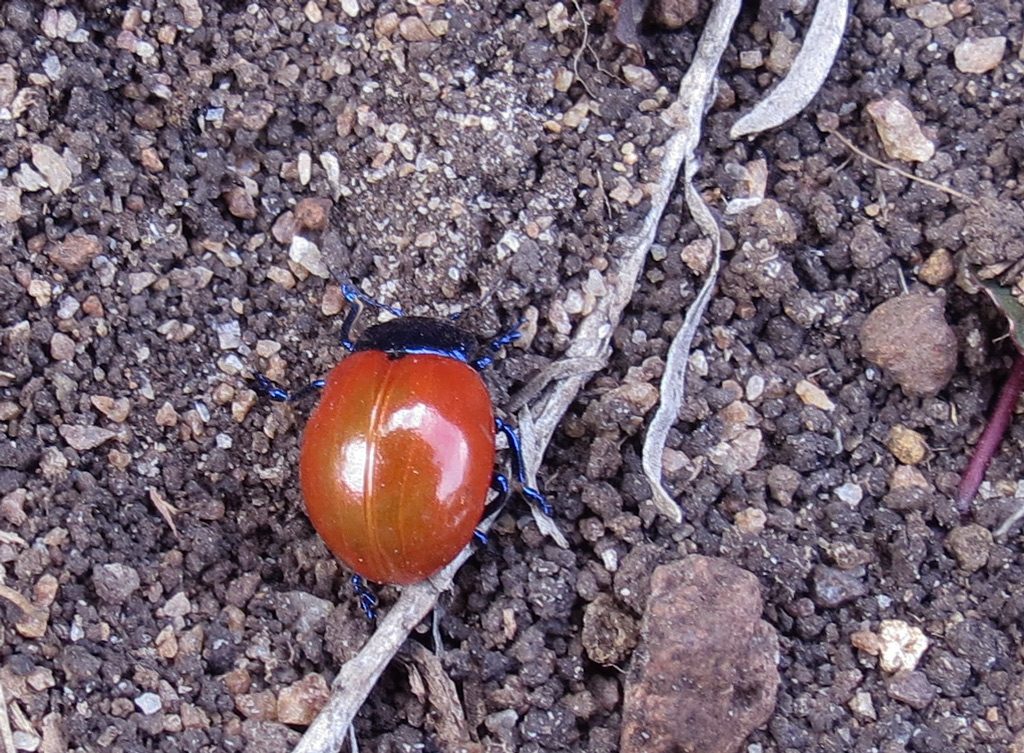 Uno dei pochissimi coleotteri osservati in questi giorni. Diversi esemplari vagavano sul sentiero. Mi sembra che assomigli molto alla nostra Chrysomela populi, ma le dimensioni mi paiono maggiori ed i colori molto più intensi (soprattutto zampe, capo e pronoto che, negli animali vivi, erano azzurro chiaro metallico). Comunque ne ho raccolto qualcuno, quindi vi proporrò qualche scatto di esemplari conservati.