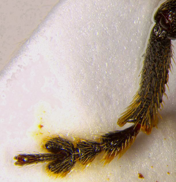 In the subgenus Paracryphiphorus, this area shows at the exterior side, a smooth elongated protrusion, which appears to limit somewhat the freedom of the tarsal movement.