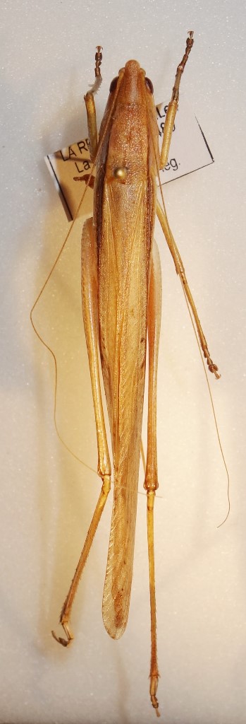 Conocephalidae, Copiphorinae. In effetti ricorda molto le nostre Ruspolia (però sicuramente non è R. nitidula che ha l'ovopositore diverso e una differente distribuzione), ma non conosco la fauna esotica. Mi documento e ti so dire.
