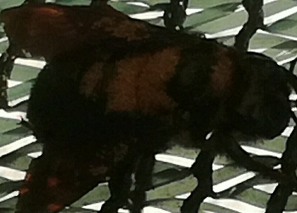 Certo l'immagine è pessima, ma potrebbe essere compatibile con qualche specie esotica di Xylocopa, per esempio l'ampiamente distribuita Xylocopa caffra, o X. virginica.