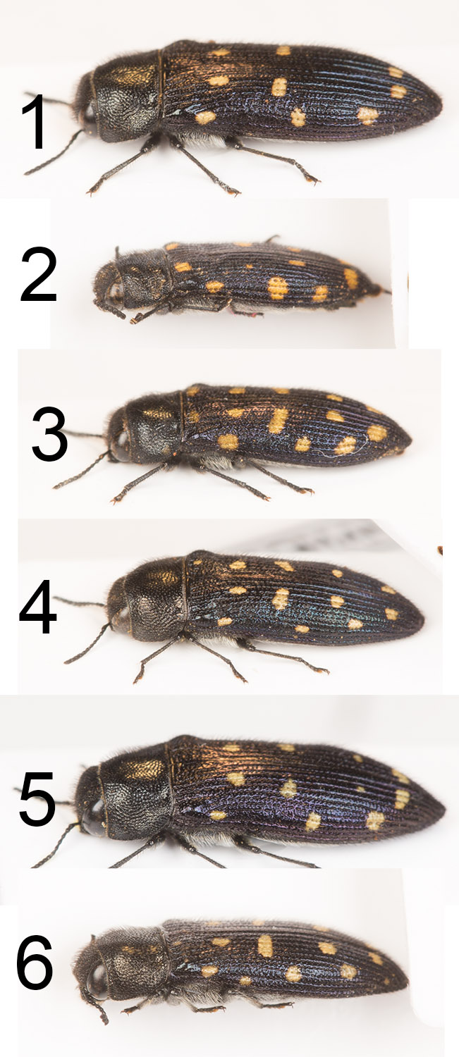 Un po di giorni fa ho preparato questi 6 esemplari piu o meno in stesso posto (1-2 km distanta) ma in 2012 (3.vi.2012). Per ora tutti credo che sono octodecimguttata ma solo penso. 1-4 maschi e 5-6 femmine.
