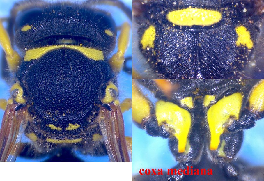 Mi ritrovo questi eumenidi catturati in accoppiamento li avevo determinati come Odynerus (Spinicoxa) reniformis, in realtà ho determinato il maschio che è molto caratteristico per la forma della coxa mediana ed i processi spinosi sottomandibolari ma la mia esperienza è limitata, sattendo il parere di Marco.