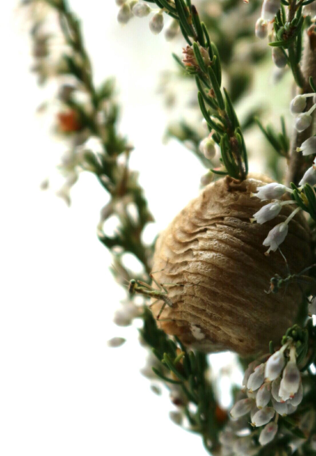 Invece ho raccolto alcuni eterotteri, e tre ooteche di Mantide. Le ho raccolte assieme ai rametti ai quali erano fissate e messe in una scatoletta di plastica.