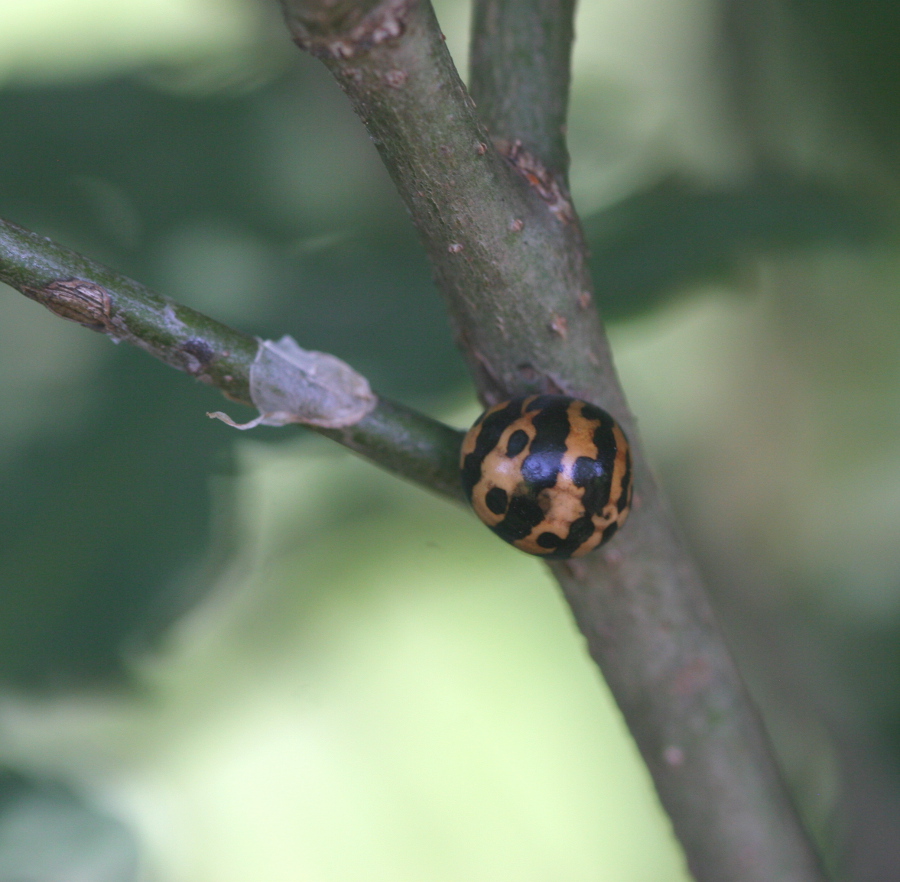 Apro con una richiesta di identificazione, che ci ha lasciati assai incuriositi: sul fusto di un arbusto, abbiamo osservato due "cosi" che a prima vista sembravano semi dalla colorazione simi-vespa. Incuriosito (e te pareva il contrario?), ne ho staccato uno e ... aperto. Ho avuto la sensazione di rompere il guscio di un uovo ... A sinistra, è visibile il punto dove ho staccato il secondo.