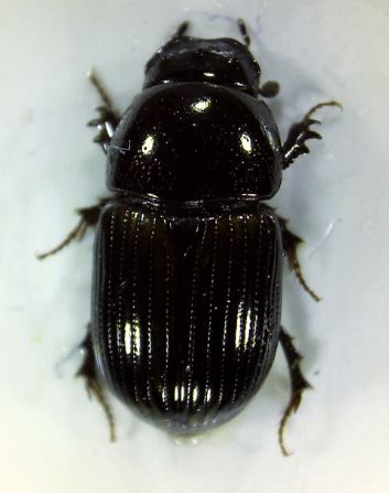 Potrebbe essere una varietà cromatica molto scura di Aphodius foetidus (Herbst, 1783), anche se il pisello non corrisponde. Oppure un Agrilinus, ma il pisello corrisponderebbe ancora meno...