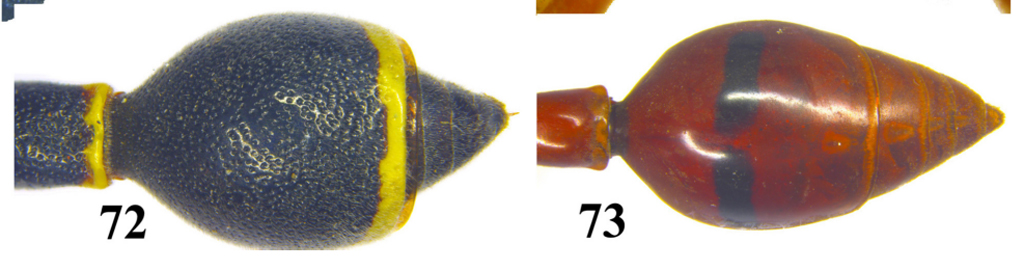 Ciao Roberto, ho preso questa immagine da un recente lavoro sugli Eumenini dell'India meridionale. A sinistra è un addome di Eumenes, mentre a destra è di Delta. Come puoi vedere all'apice del secondo tergite nell'Eumenes è presente una lamella che ha chiaramente un aspetto diverso rispetto al resto del tergite, mentre nel genere Delta non ci sono differenze.