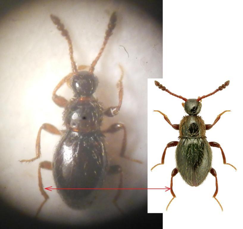 Questo non ricordavo di averlo preso. Era insieme ad alcuni Pselafini raccolti tra i detriti del fragmiteto circostante una zona umida. Somiglia all'Euconnus (Euconnus) hirticollis ma è diverso per la forma delle antenne e dell'edeago che ha due sporgenze appuntite ai lati.