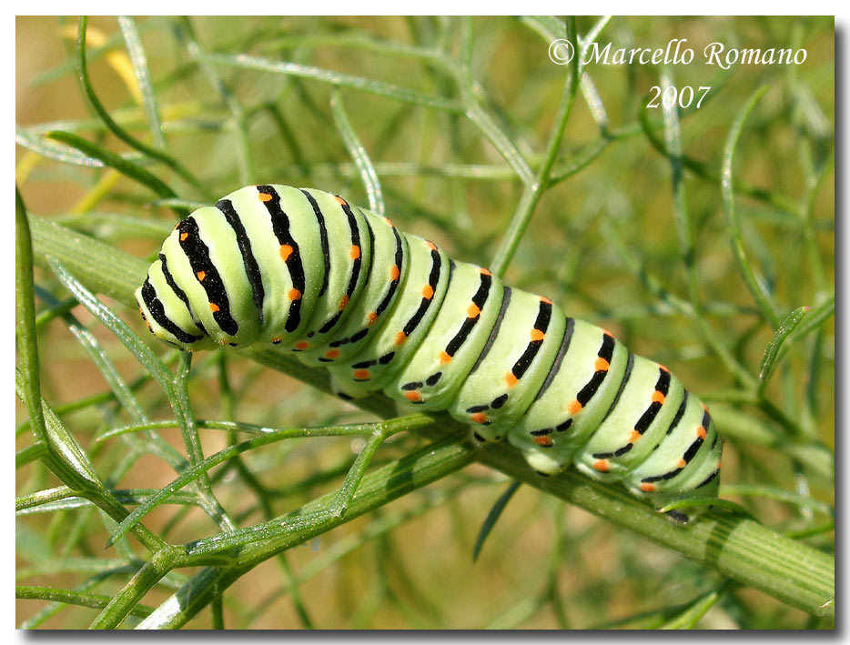 Come ornamentazione sono in effetti singolari, con quel po' di bianco sul nero-arancio. Qui nel Lazio, comunque, il macaone depone anche sulla ferula, che è anche riportata tra le pianti alimentari (per esempio da Tolman).