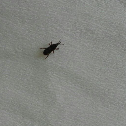 Sicuramente è un Sitophilus. Nei nostri magazzi e case sono diffuse tre specie: Sitophilus granarius Sitophilus oryzae Sitophilus zeamais Il nome specifico indica quale sia la risorsa alimentare preferita per lo sviluppo larvale di ciascuna specie: grano, riso e mais. Ma possono anche scambiarsi i ruoli. Il tuo è probabilmente S. oryzae, ma dalla foto non si distingue (la forma è la stessa, il primo tutto nero, le altre due specie con quattro macchiette rossastre sulle elitre, che nella tua foto non si vedono, ma è molto scura e potrebbero pure esserci).