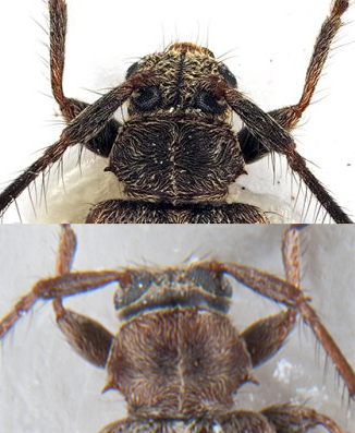 Non ho seguito nessuna tavola, ma sono andato ad occhio, basandomi su i numerosi Exocentrus (tutti adspersus e punctipennis) che nel corso degli anni mi sono usciti dagli allevamenti di xilofagi o mi sono arrivati alla luce, o trovati casualmente battendo. Però la mia non è certo l'opinione di un esperto di questa famiglia.