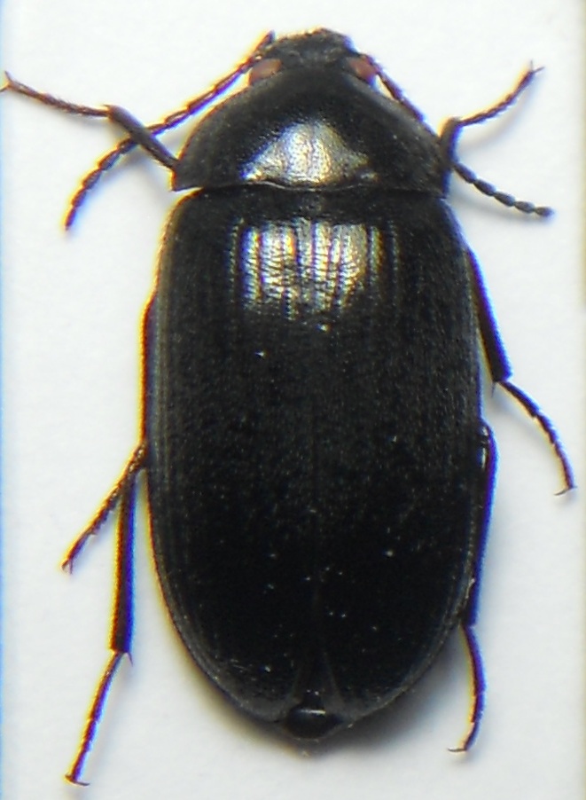 - ater, 12-14 mm; prosterno avanti le anche, non molto corto (sic!), alquanto convesso e densamente punteggiato...elitre dalla base, striate da leggere impressioni longitudinali (?!)...punti più grossi al fondo delle strie, intervalli distintamente convessi. Nero, quasi opaco.