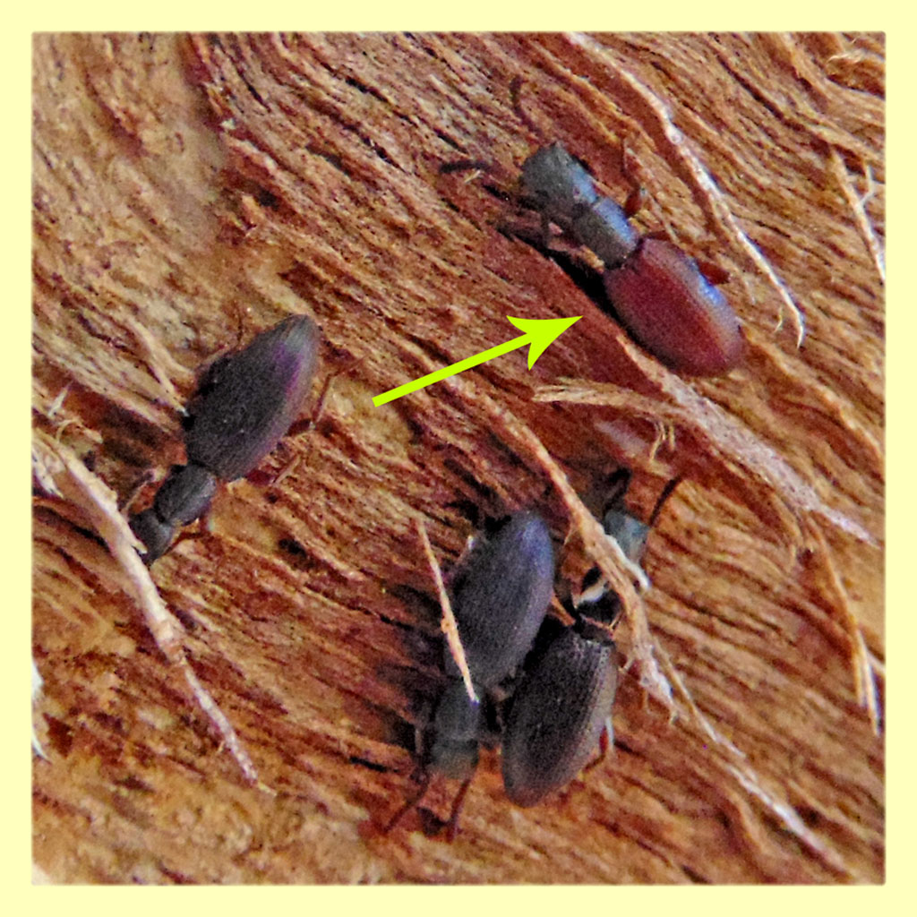 ...sotto corteccia di Eucalipto mi sono imbattuto in questo gruppo di Stenosis sp.. Quello che non riesco a capire è se quelle bicolor (quelle segnate con la freccia gialla) sono immature o addirittura altro genere ?... grazie...scusate per le foto !!