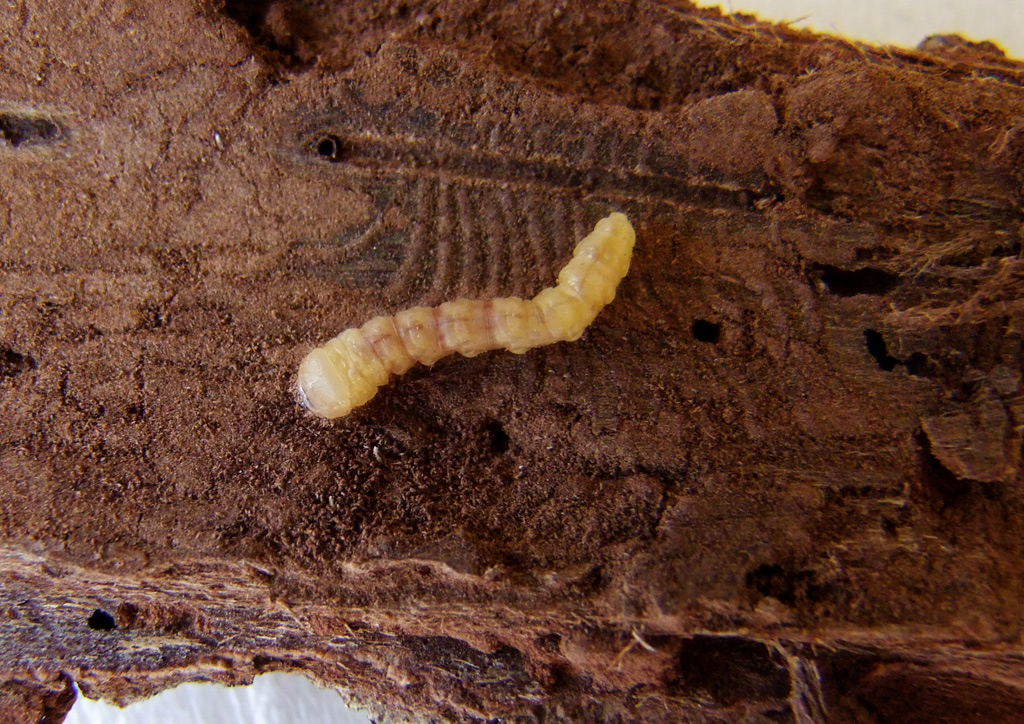scusate il numero delle foto che vi propongo, ma volevo darvi un'idea della successione dei momenti significativi della caccia alla larva di questo simpatico cerambicide. Dal riconoscimento del ramo infestato sulla pianta viva al suo distacco per verificare la presenza della galleria larvale e al passo successivo (molto importante!!) della presenza della larva. La pianta è un Quercus pubescens, il diametro del ramo è un centimetro scarso e la lunghezza della larva circa 13/14 mm. Il ramo staccato misura circa 40 cm.