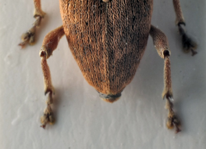 Ciao Krep, ho guardato al microscopio il curculio. 1. il "brush" sembra esservi ma non è molto evidente. 2. l' ultimo segmento dell' antenne è più lungo che largo. Non avendo un curculio da poter comparare, credo che questo sia glandium.