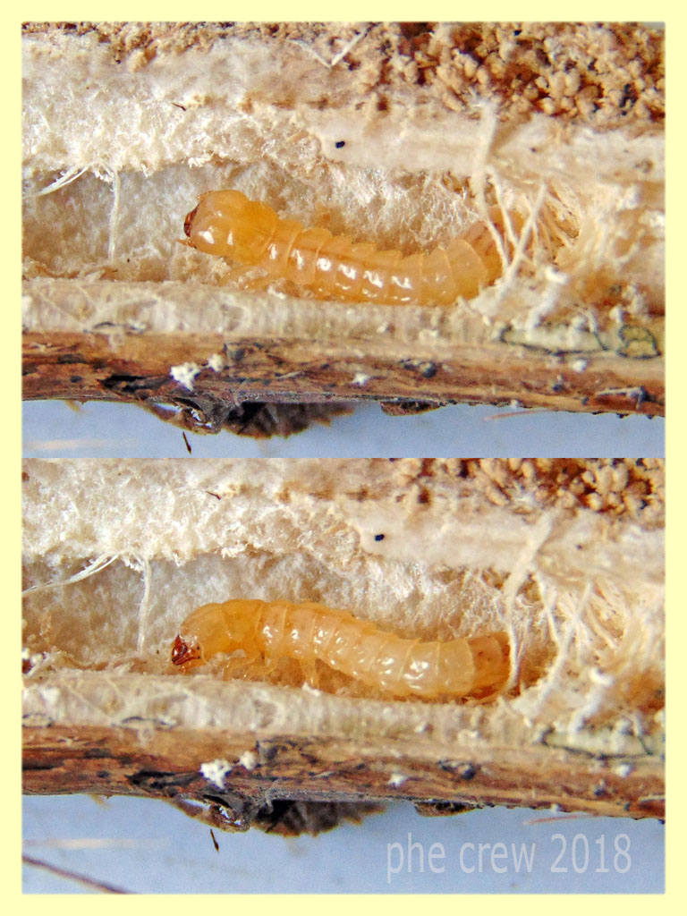 Però nel midollo spugnoso di queste piante si sviluppano anche larve di altre famiglie non propriamente xilofaghe, senza adattamenti spinti a quel tipo di vita (notare in questo esemplare antenne e zampe ben sviluppate, che nei veri xilofagi si riducono o scompaiono).