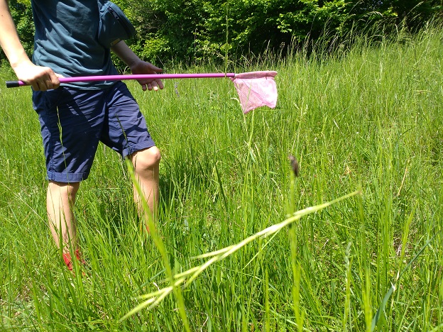 Giunti, coi mezzi motorizzati, in cima alla collina, iniziamo ad avventurarci giù per la stradina, accolti dall’ombra delle piante. Purtroppo i fiori dei biancospini e degli orni, da poco appassiti, non fruttano molto, così ci gettiamo in un praterello verde brillante a lato della strada; sugli steli d’erba sono frequenti gli Elateridi (di una sola specie purtroppo, credo del genere Cidnopus), sui fiori le Oxythyrea e le Tropinota squalida. Nicolai, esultante, avvista un’Anthaxia, ma quella non ne vuole sapere di farsi pigliare e gli sfugge. Ci mettiamo così a scrutare i cespugli di rosa canina in cerca di qualche bestiola floricola, in particolare Cetonini, le prede più ambite da Nicolai: d’un tratto un inconfondibile ronzio ci avverte del decollo di una Cetonia che però, nonostante l’ausilio del mio validissimo retino (vedi foto :mrgreen: ), ci sfugge e, a parte qualche serafico Brachypteroma ottomanum, non troviamo altro.