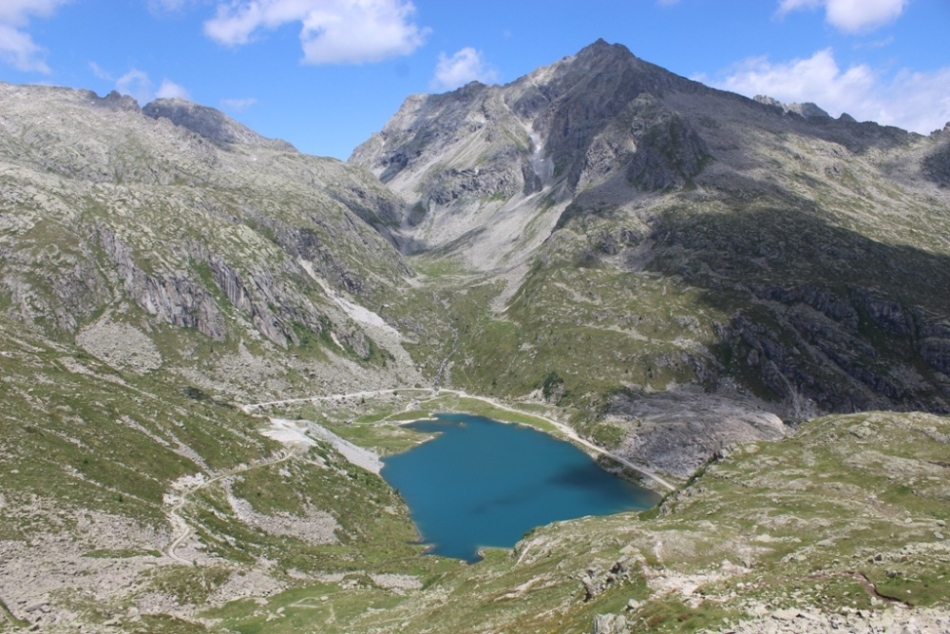 E, subito dopo di loro, ecco che compare il Lago Scarpacò. Anche qui il paesaggio è spettacolare. Il lago si trova sul fondo di una conca circondato dalle montagne e l'acqua è limpidissima e di un blu intenso, alimentata dai ruscelli che derivano dai nevai in scioglimento.