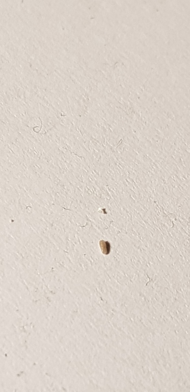 Salve a tutti, come diceva Glaphyrus mi è stata consigliata una fumigazione con termonebbiogeno... ma non so ancora se ho risolto qualcosa o no...... di seguito vi posto i ritrovamenti post disinfestazione e due foto simili alle tante precedentemente postate di questi granellini che però ho ritrovato su indumenti che avevo lavato a 80 gradi e asciugati in asciugatrice e riposto in buste sigillate prima della fumigazione, naturalmente ritrovati addosso, sempre in vicinanza dei fori sul tessuto, a seguito di intenso pizzicore.Per cui per precauzione imbottirò di antitarme simil naftalina le buste con gli indumenti lavati precedentemente alla disinfestazione sperando di non avere altri avvistamenti........ preferivo essermi immaginato tutto... :) :) :)