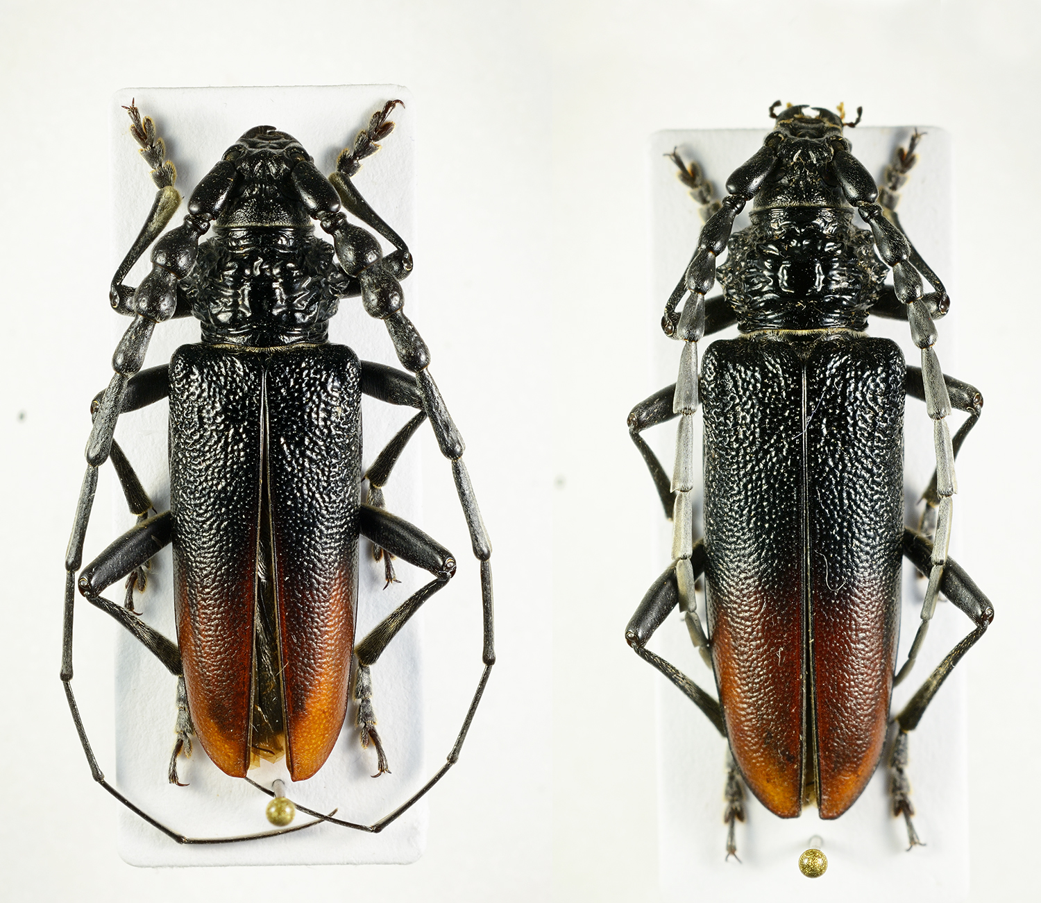 4 antenne nel maschio molto più lunghe del corpo, con articoli non molto globosi, apice elitrale con evidente spina…………..cerdo Linnaeus