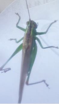 Sul primo punto hai ragione, brava, è un maschio; sul secondo punto effettivamente no, le tegmine e ali sembrano totalmente ben formate, in questa specie come in altre le ali sono fatte così; e poi questa potremmo correttamente chiamarla cavalletta, ma non è scientifica la suddivisione degli ortotteri in cavallette, grilli e locuste.