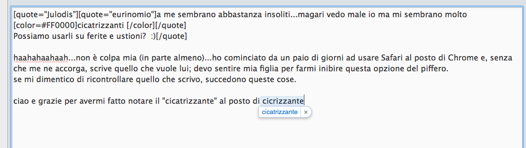 haahahaahaah...non è colpa mia (in parte almeno)...ho cominciato da un paio di giorni ad usare Safari al posto di Chrome e, senza che me ne accorga, scrive quello che vuole lui; devo sentire mia figlia per farmi inibire questa opzione del piffero.